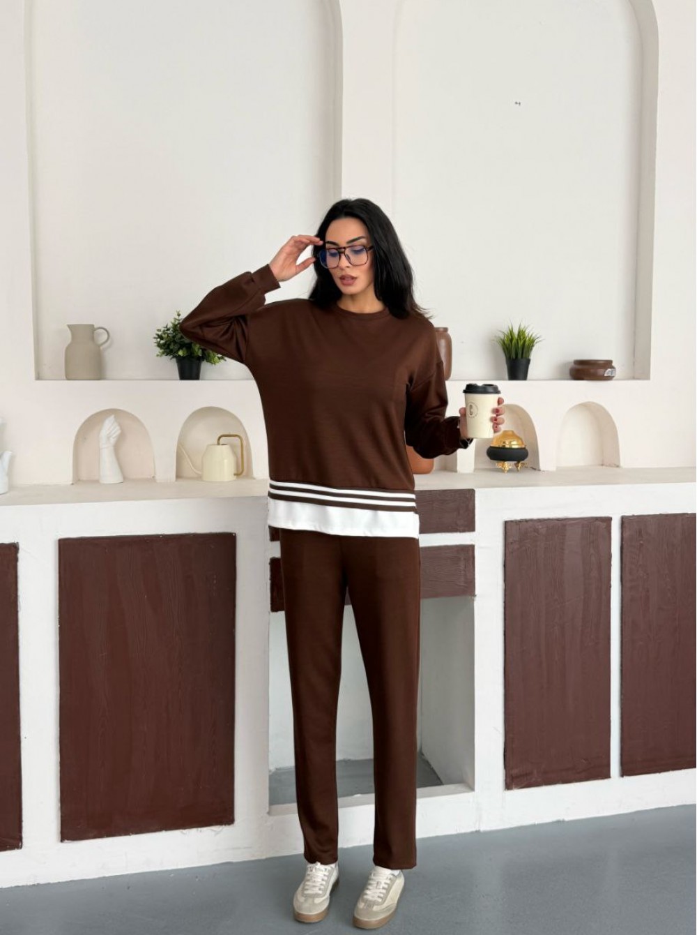 220687 KAHVERENGİ EŞOFMAN TAKIM MODAL KUMAŞ