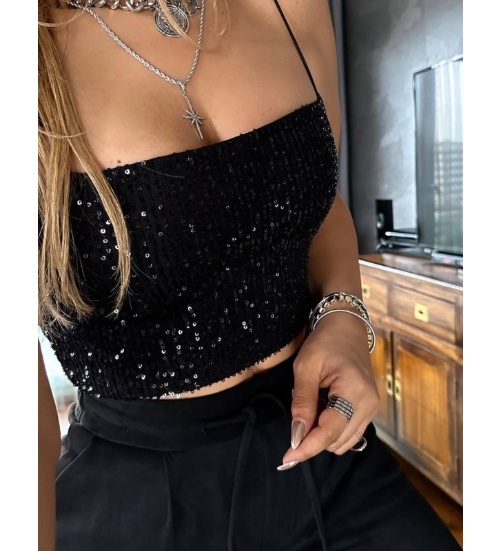 192954 SİYAH BLUZ PUL PAYET