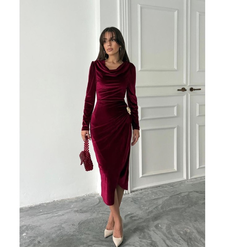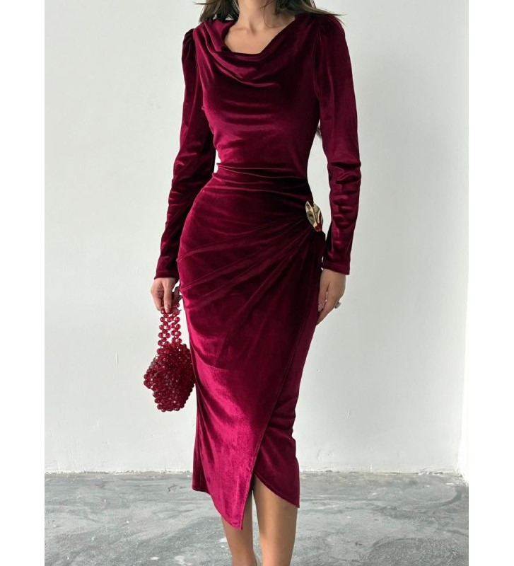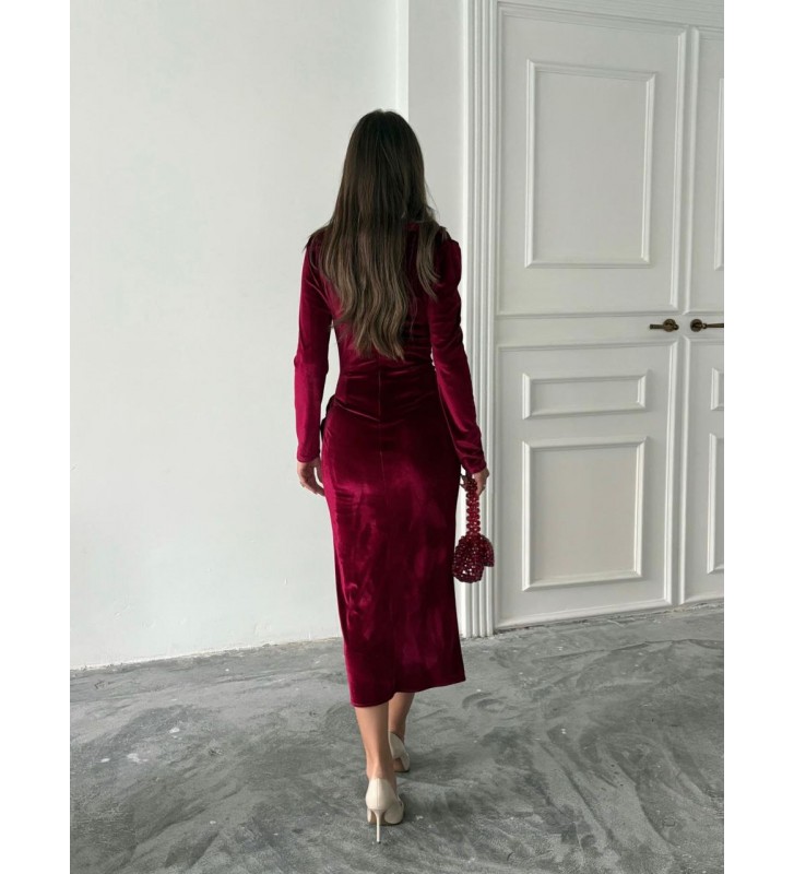 221489 Burgundy DRESS "KADİFE KUMAŞ"