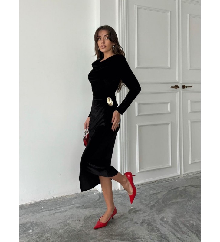221490 BLACK DRESS "KADİFE KUMAŞ"