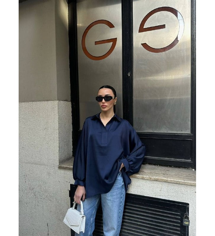 210626 NAVY BLUE SHIRT SATIN FABRIC
