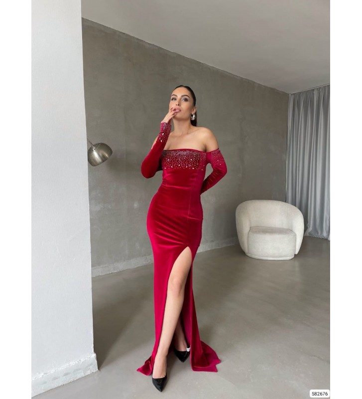 219523 KIRMIZI ABİYE KADİFE