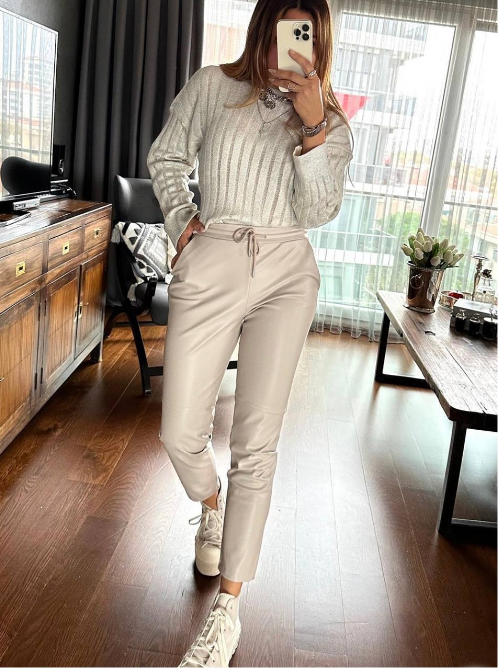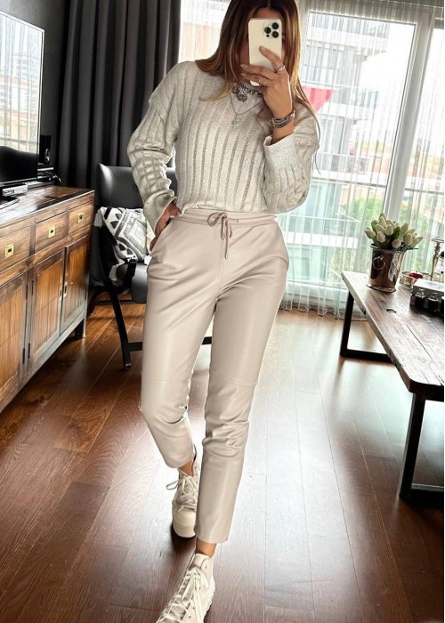 220748 KREM PANTOLON SUNİ DERİ