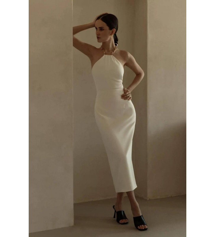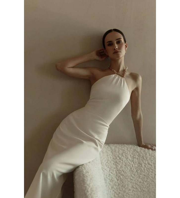 204573 BEYAZ ELBİSE ATLAS KUMAŞ