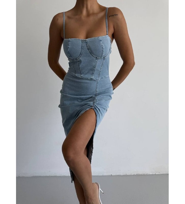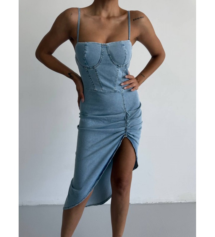 210716 İNDİGO ELBİSE KOT KUMAŞ