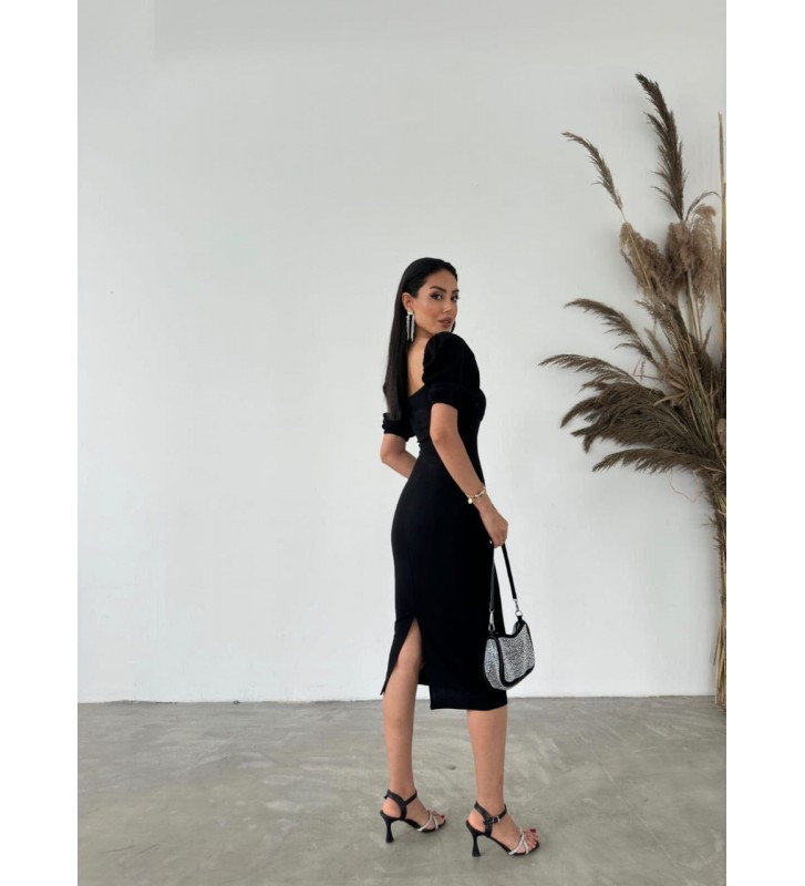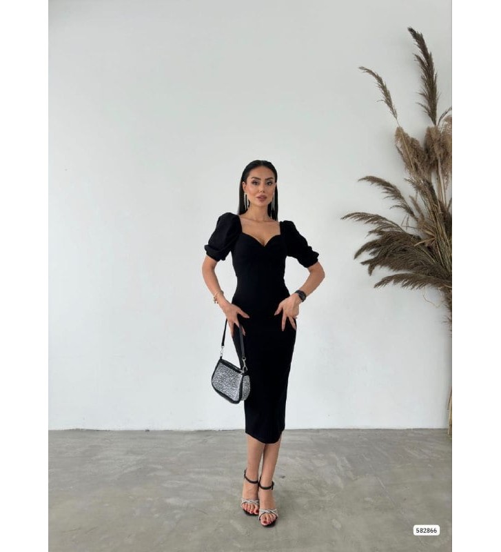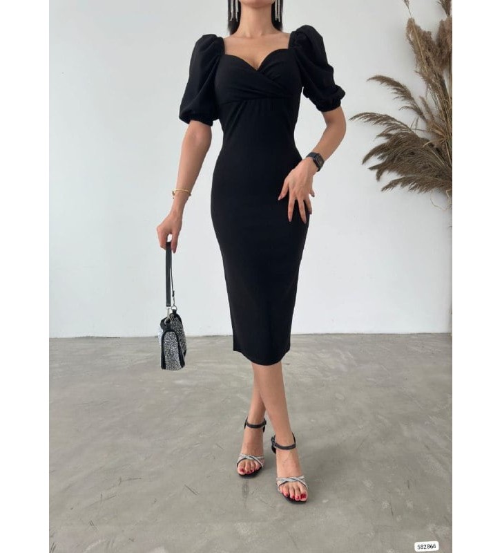 211999 SİYAH ELBİSE SCUBA CREP