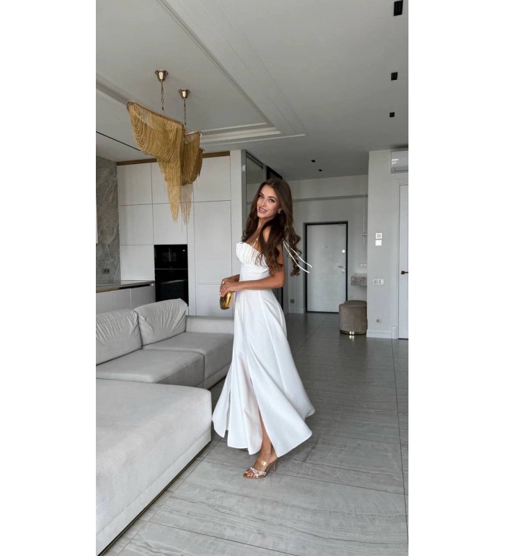 215928 EKRU ELBİSE ATLAS KUMAS