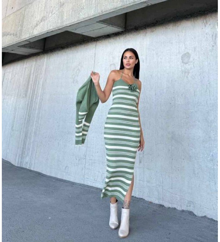 216027 YEŞİL ELBİSE TRİKO