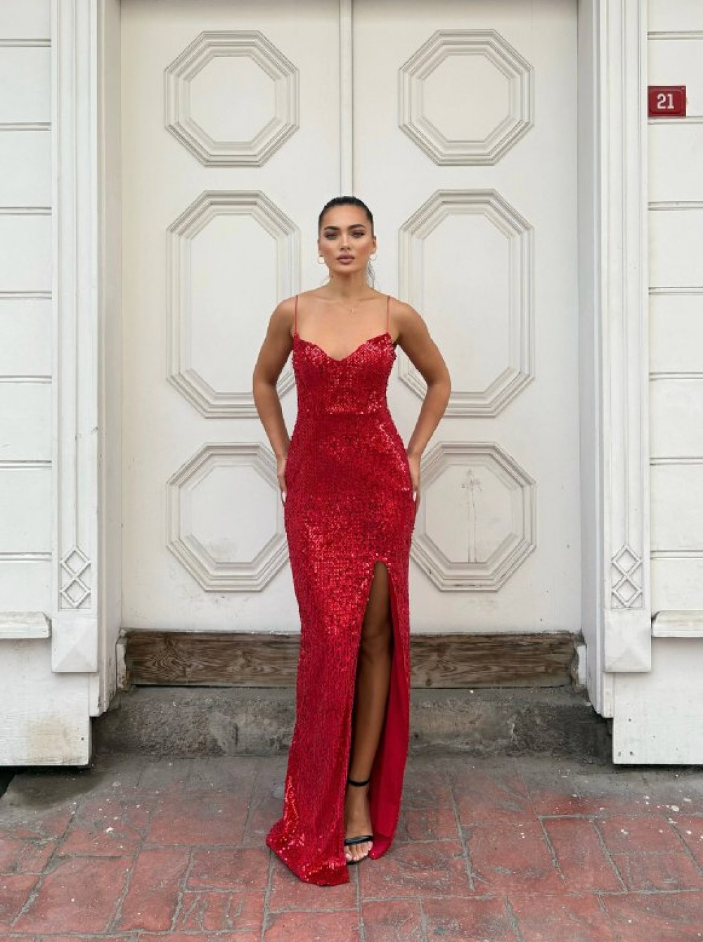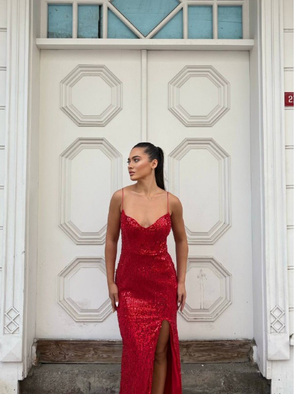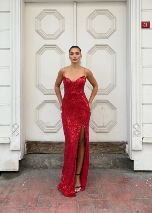 219453 KIRMIZI ELBİSE KADİFE