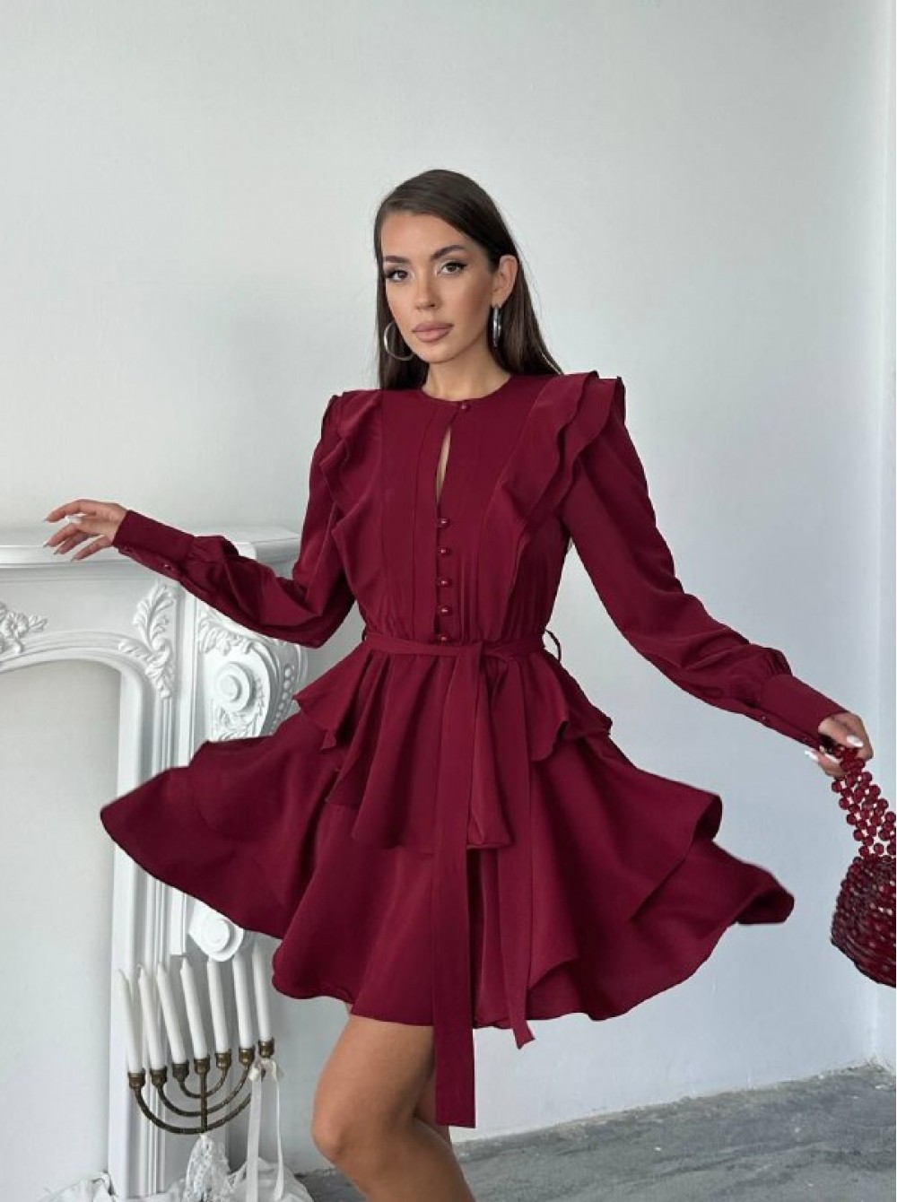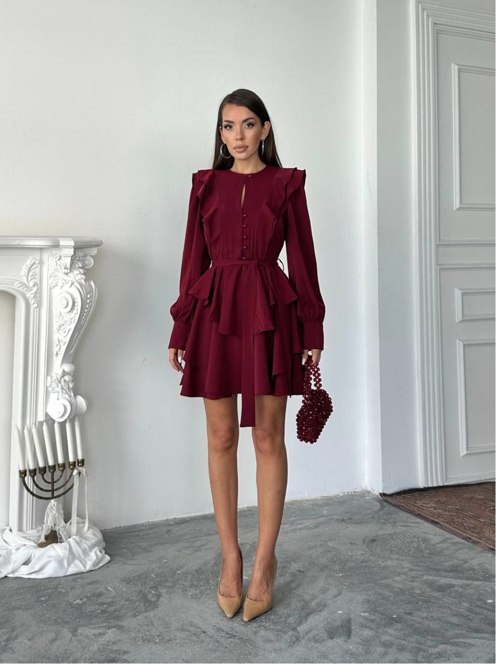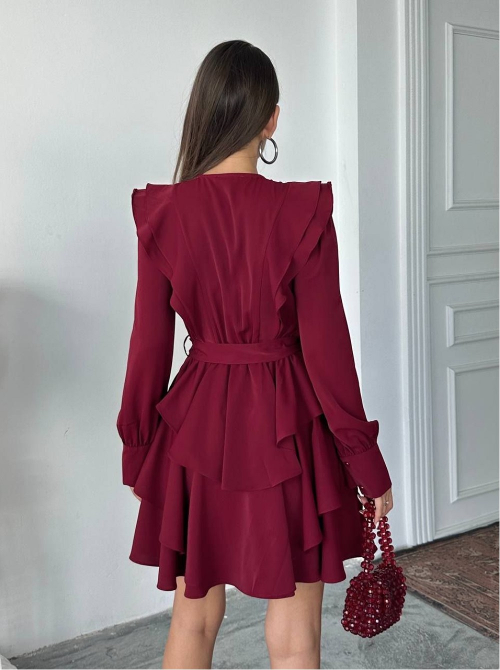 220068 BORDO ELBİSE JESİCA KUMAŞ