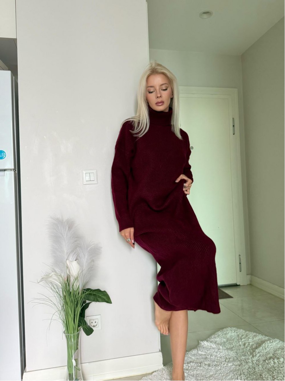 220256 BORDO ELBİSE TRİKO