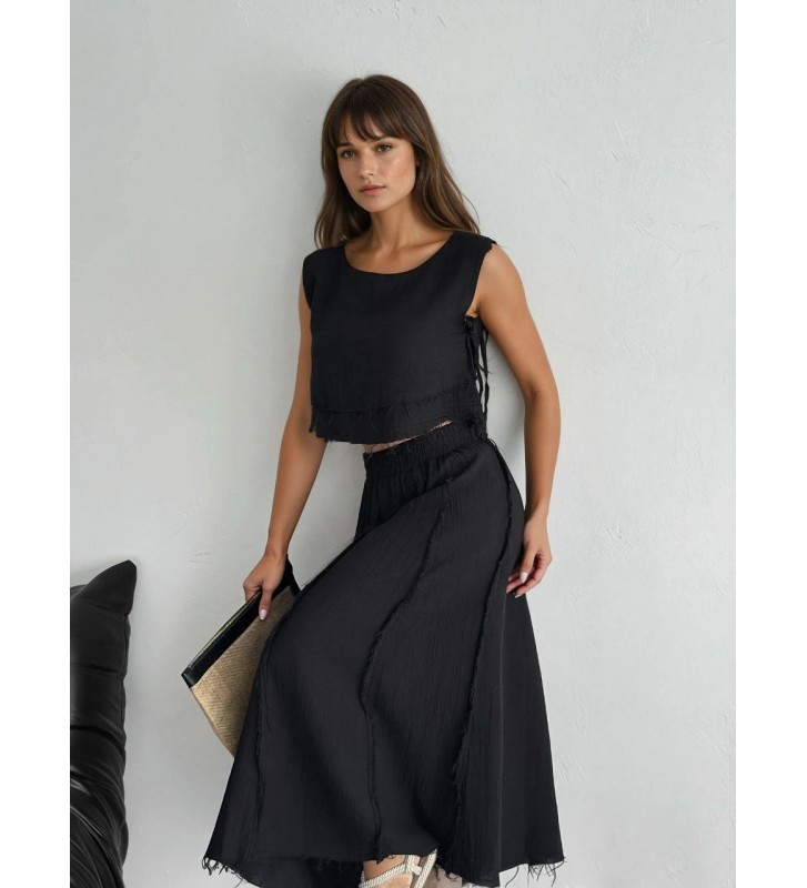 208555 SİYAH TAKIM MÜSLİN KUMAŞ TASARIM