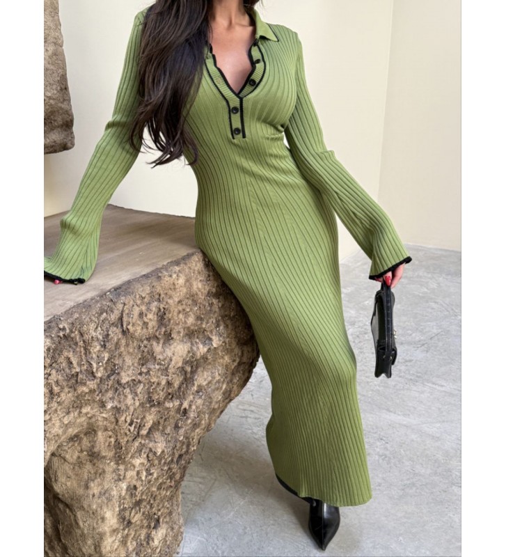 216591 HAKİ ELBİSE TRİKO
